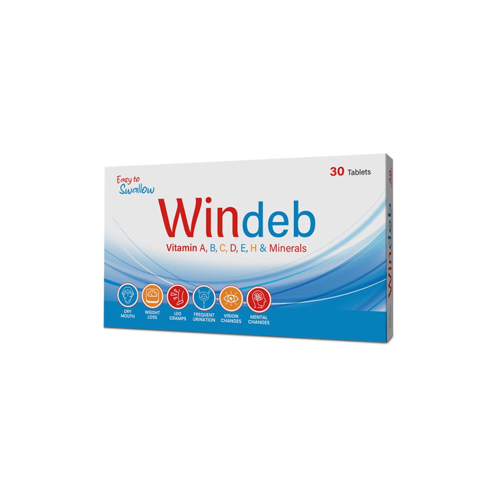 Windeb is a complete multivitamin for diabetic care, enriched with L-Carnitine, B-vitamins, essential minerals, and antioxidants. It boosts energy, fights fatigue, supports nerve and thyroid health, and improves insulin sensitivity. Windeb protects against diabetic complications.